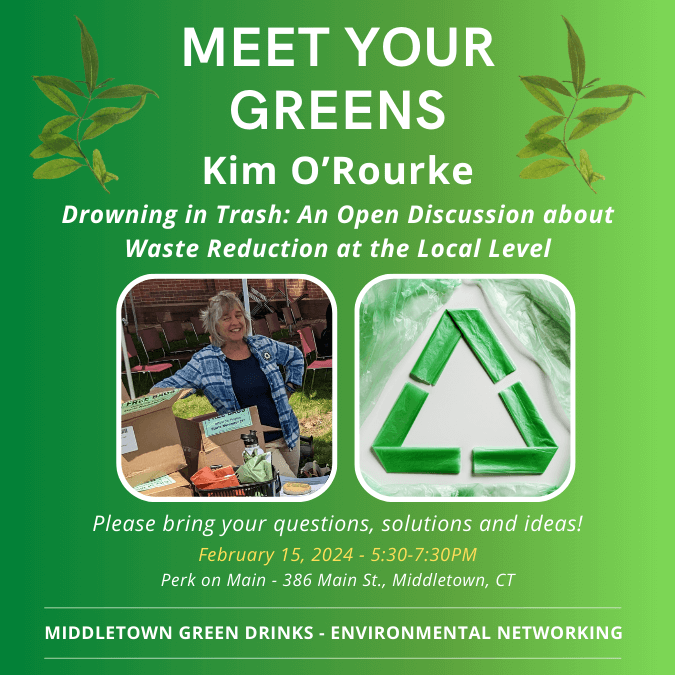 For those of you not familiar with Meet Your Greens: Middletown Green Drinks, this monthly event provides networking opportunities for anyone who is interested in making connections and exchanging news about emerging environmental issues to help keep Lower Connecticut River Valley communities green and growing. An official location of Green Drinks International, this informal monthly gathering of people drawn from the community, nonprofit groups and the business world offers time to brainstorm ideas and plant seeds for collaboration. All are welcome and there is no admission fee, unless otherwise noted.
