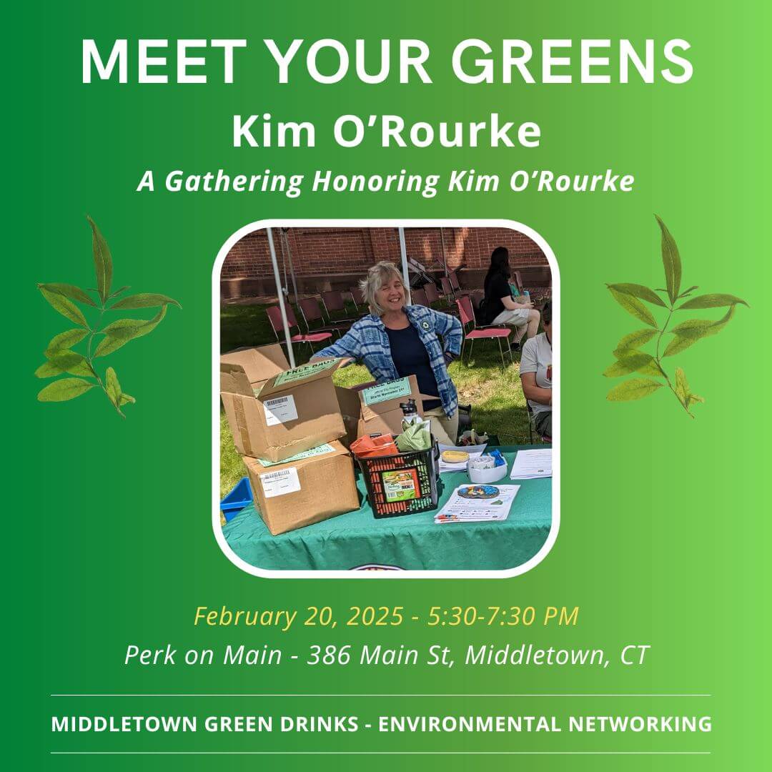 Join us on February 20 for a special Meet Your Greens gathering as we celebrate Kim O’Rourke’s recent retirement after over 30 years of dedicated service to the City of Middletown. As the longtime Recycling Coordinator, Kim has made a lasting impact on sustainability efforts in our community. This will be an evening of conversation, stories, and reflections on Kim’s journey—sharing her experiences, the progress she’s led, and her outlook on what’s to come.