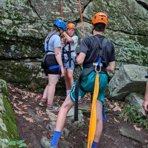 The Rockfall Foundation recently visited Deer Lake Camp in Killingworth, CT, owned and operated by Pathfinders, Inc. This visit celebrated a grant awarded by the Foundation which funded the purchase of 20 full-body harnesses for the Deer Lake Wilderness School. These harnesses ensure safety and inclusivity, support climbers with restricted abilities, and enhance the overall climbing experience.