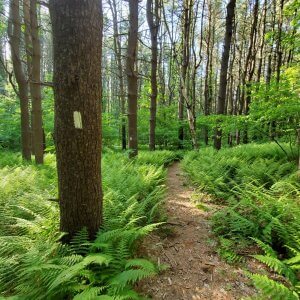 If you’re looking for a beautiful, short walk in nature, this loop trail is for you! Wilcox Conservation Area boasts a plantation of red and white pine groves with a summertime ground cover of brilliant fern. The mixed hardwood forest also includes a red maple swamp. This 151 acre preserve in western Middletown abuts Lamentation Mountain in Berlin, and Guiffrida Park and Chauncey Peak in Meriden. See additional options at the end of this blog post for more adjacent or nearby suggestions. In particular, nearby Highland Pond gives you a chance to see aquatic wildlife. The blue-blazed trail on both of these properties is the Mattabesett Trail, part of the 220-mile New England Scenic Trail.